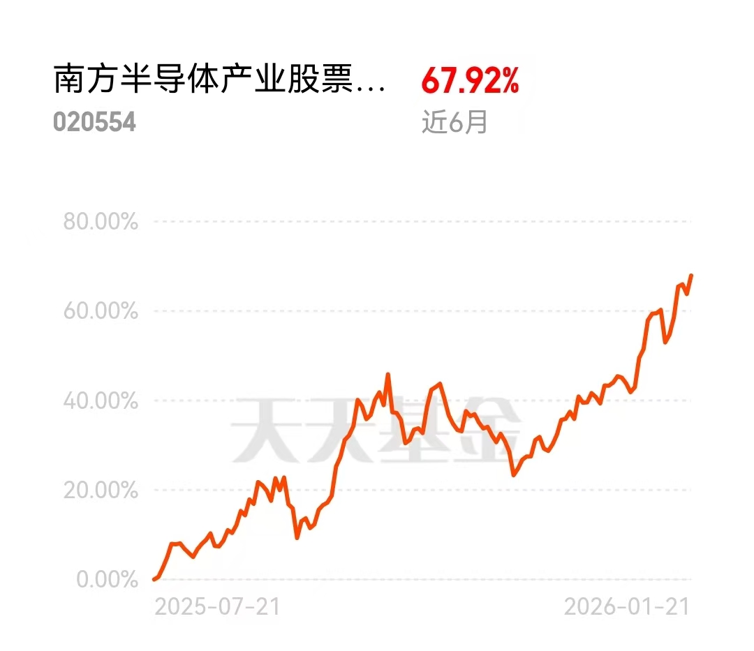 今天又买了点$南方半导体产业股票发起A$(020553),这基金真是涨势如虹,刚刚又创下了历史新高。看看业绩数据,近半年收益68%,近一年收益87%,在同类产品中排名前列,表现相当出色。当前市场的主线方向非常明确,就是围绕半导体产业链展开,特别是光刻机相关领域和本土化替代环节。行业正迎来周期性回暖,加上本土化进程加速,两大动力共同推动行业发展。在大盘呈现新趋势的背景下,这种结构性行情中抓住主线品种尤为重要。我认为这个方向未来还有较大空间,现在的参与时机依然值得把握。#CPU概念突然大火:巨头产能已被预订一空#