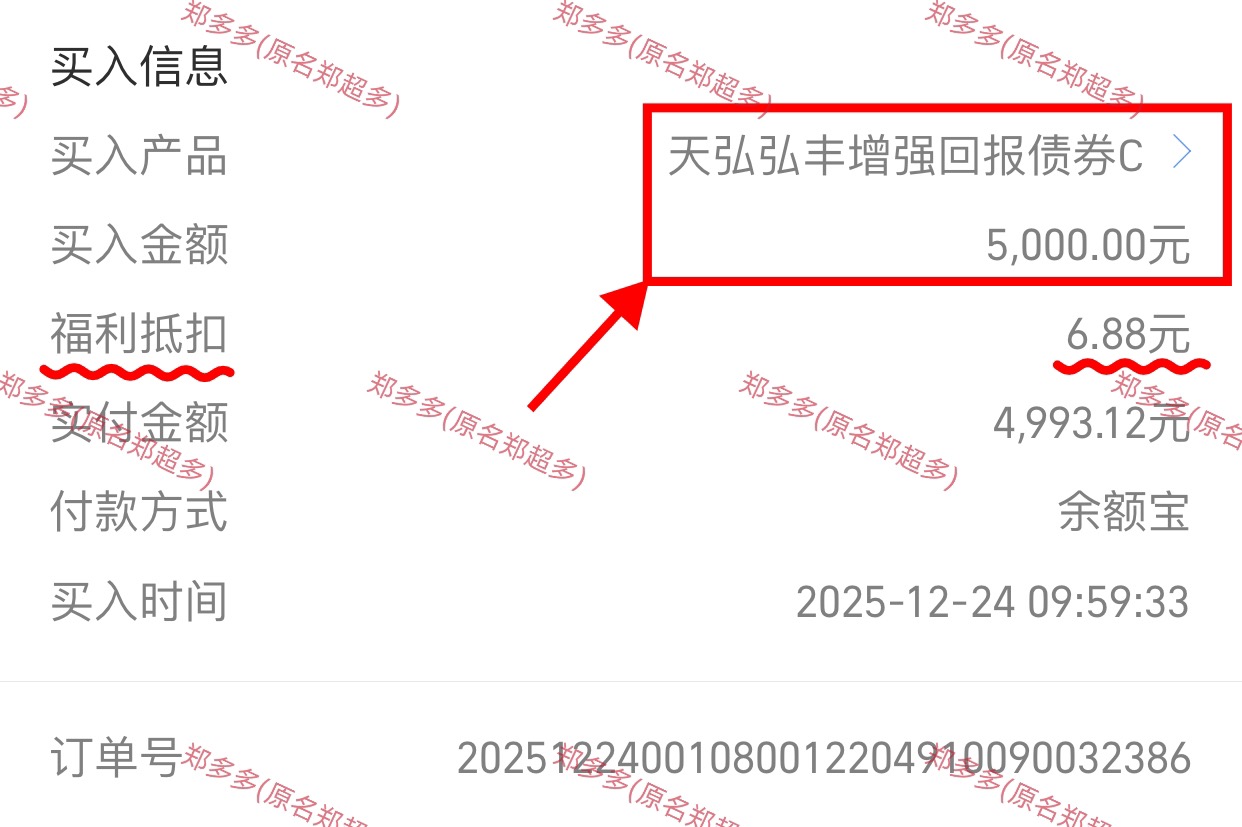 今天继续+5000元{$天弘弘丰增强回报债券C$},这只天弘老朋友以债券为主,其中可转债占60.29%,利率债占48.81%,同时配了19.94%的股,进可攻退可守。近一周收了104个蛋,近6个月上涨了11.1%,近1年上涨了13.85%,表现有目共暏。