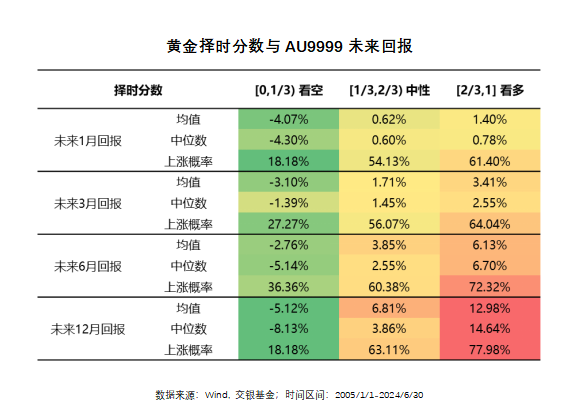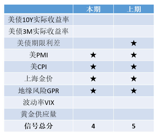 信号说明:交银黄金信号系定量化模型,其分值由9指标综合计算得出,信号分值越高越看好。如果分数<1/3,则看空黄金;如果分数>=2/3,则看多黄金;其余则对黄金观点中性。交银黄金加基金投顾策略根据黄金模型月末信号,定期调仓黄金类资产持仓比例,力争提升黄金投资性价比。