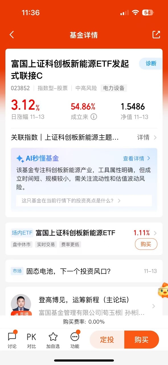 $富国上证科创板新能源ETF发起式联接C$ 主动选股还能有超额,光伏的新技术还没开始爆发,后面估计会更加亮眼