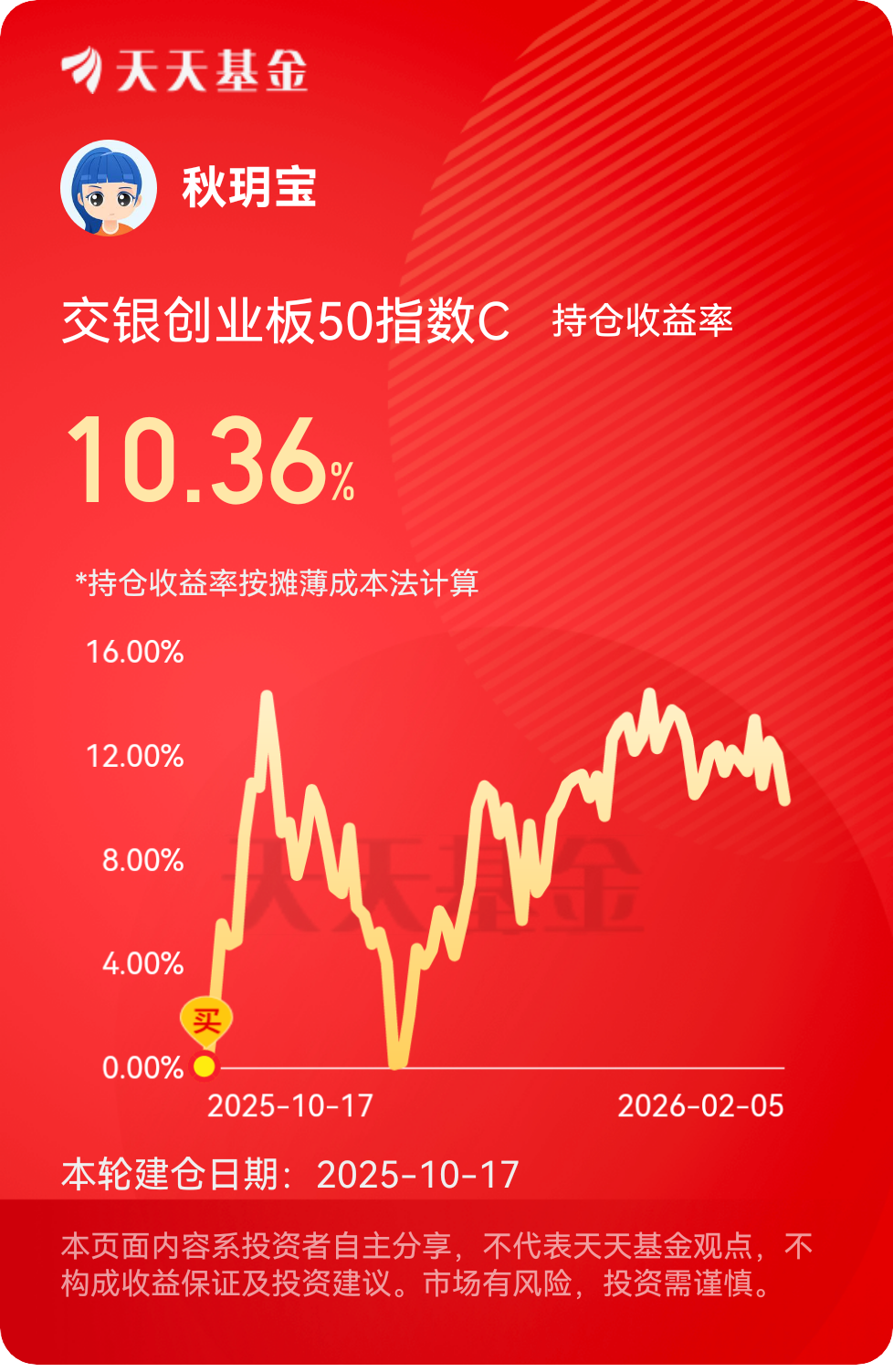 守交银创业板50指数,淡看震荡起伏,对科创赛道满是信心,稳拿不折腾,静待成长力量绽放!#晒收益#