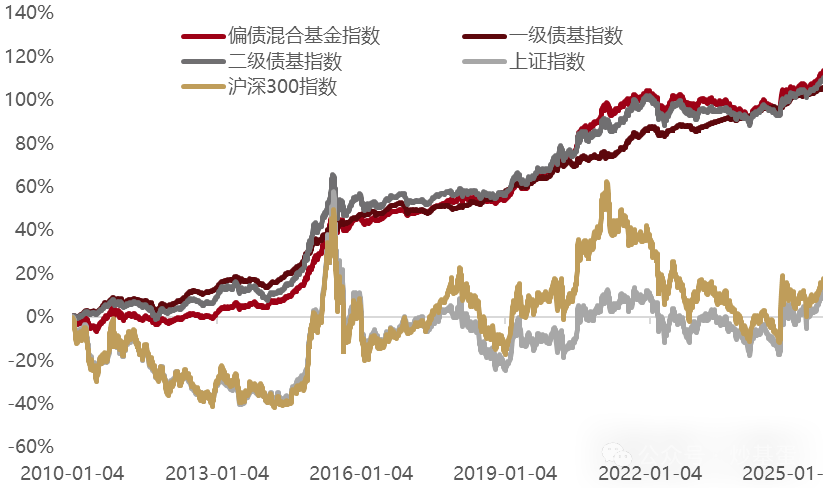 我们回溯一下历史,看看权益基金与固收+类的基金历史走势如何?