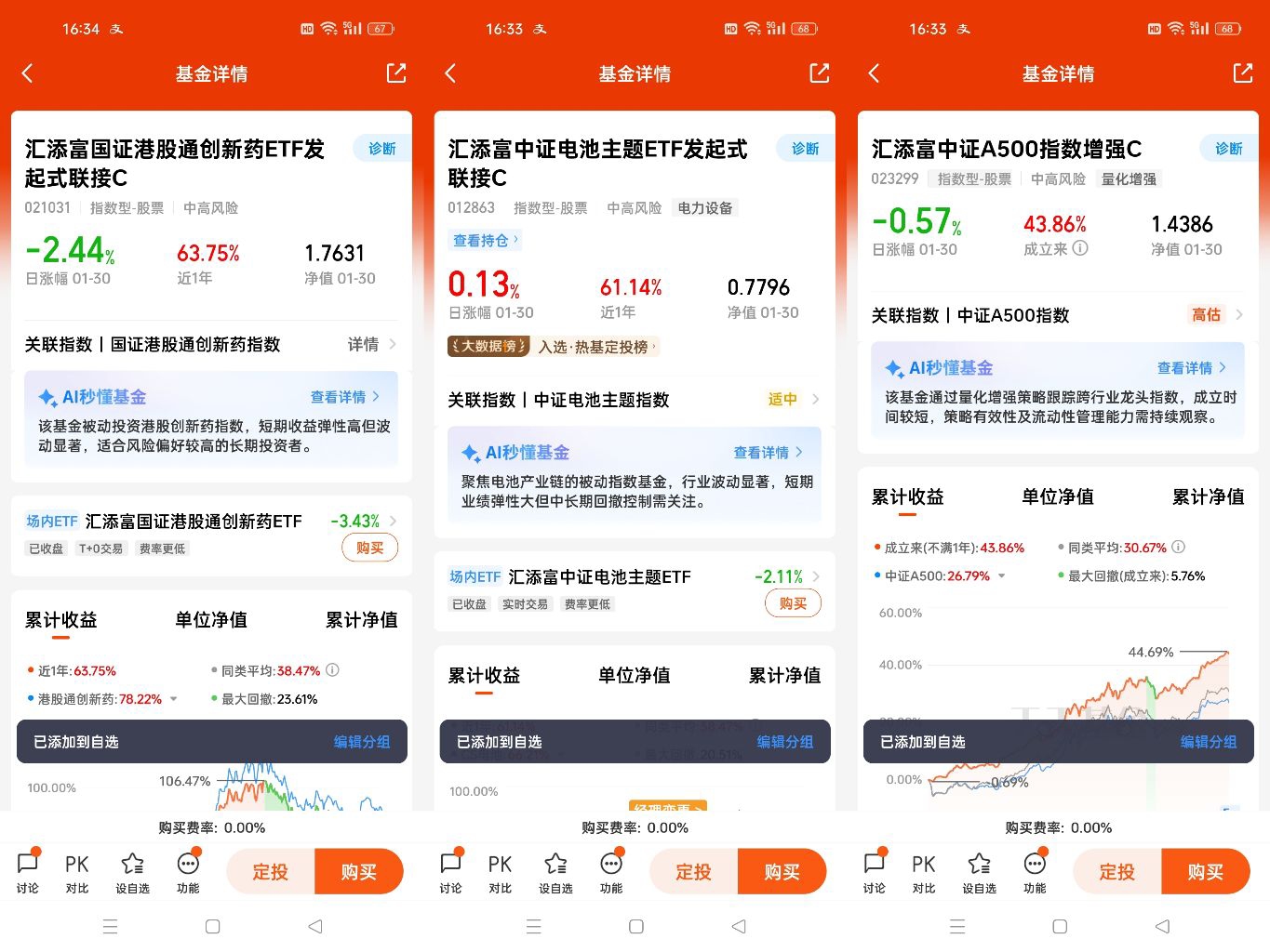 $汇添富中证A500指数增强C$ $汇添富中证电池主题ETF发起式联接C$