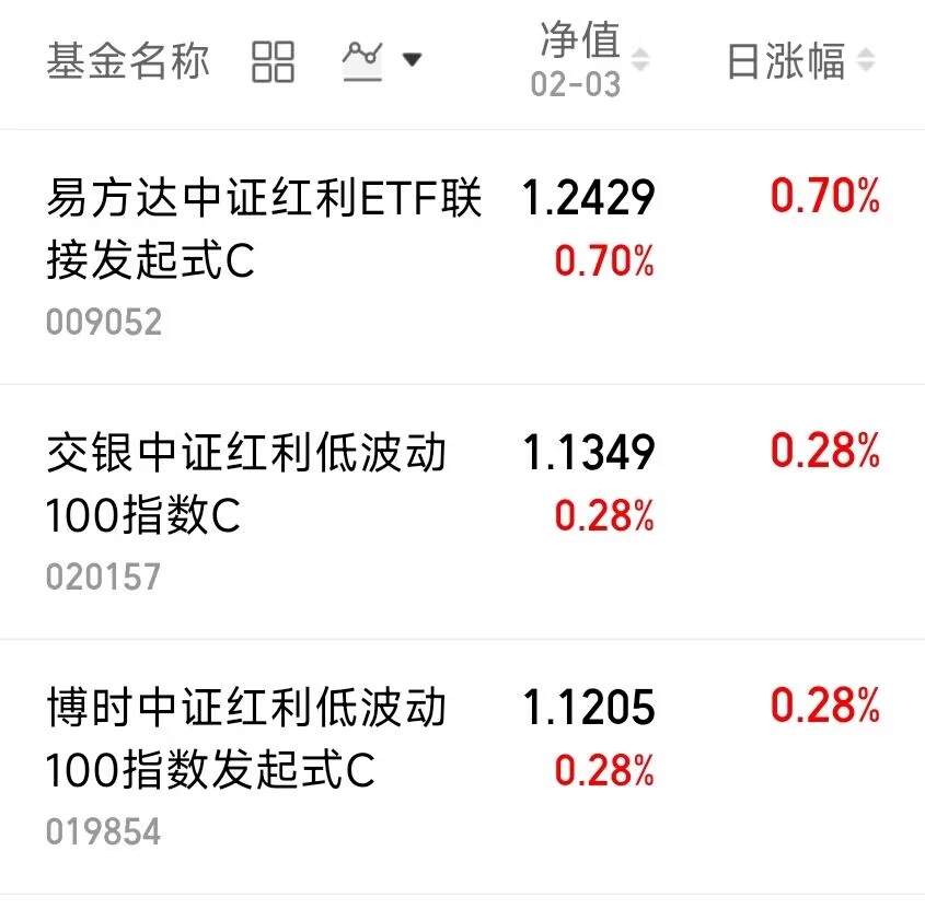 年底市场波动加大,高股息策略彻底成香饽饽,恰逢上市公司密集派发股息红利。易方达中证红利 C布局煤炭等高股息标的,股息率突出且行业分布分散,过往业绩表现亮眼,持续跑赢众多同类竞品。近期机构大举加仓布局,我跟随加仓,静待兑现丰厚收益!