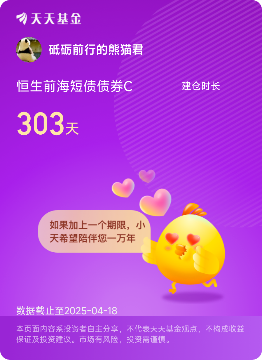 • 历史实践:持有恒生前海短债债券C 303天,收益0.85%,年化收益率1.05%,虽不惊艳,却胜在“稳”字当头。