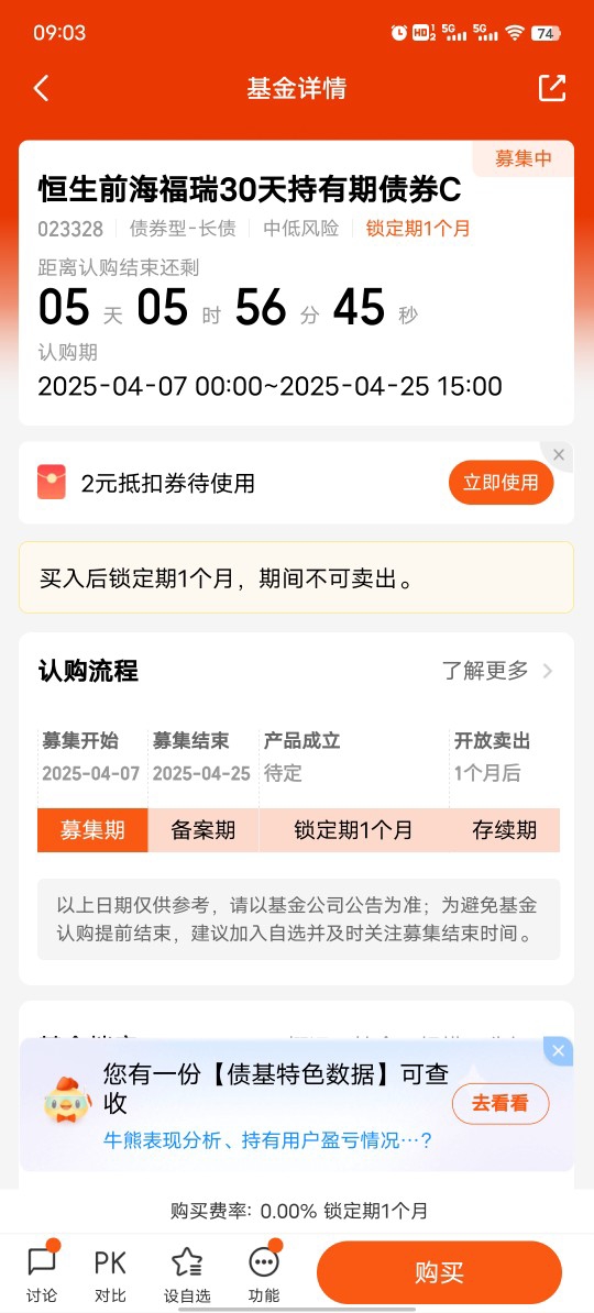 $恒生前海福瑞30天持有期债券C$这是一支需要持有满30天才可卖出的纯债基金,属