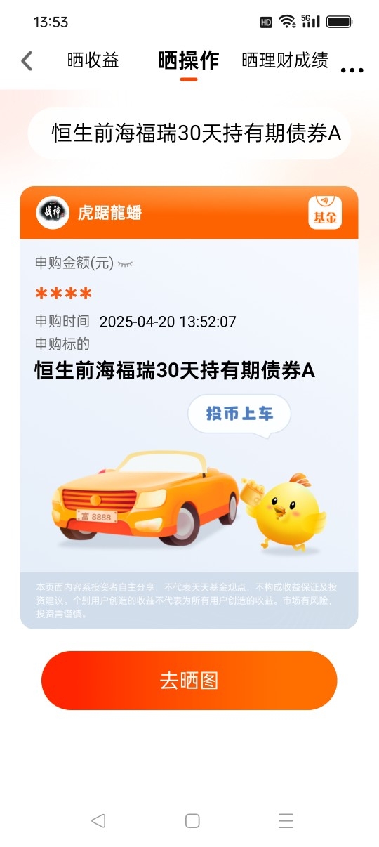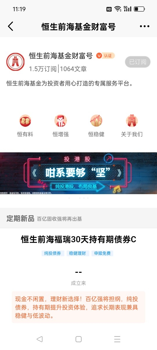 #$恒生前海福瑞30天持有期债券C$ 正在火热发行中!这是一只纯债基金,追求稳健收益,设置30天持有期能够帮助投资者避免频繁操作,培养长期投资理念。我已认购$恒生前海福瑞30天持有期债券A$,将会长期持有,获得更好的收益回报和持有体验!一直坚定持有$恒生前海短债债券C$,体验非常好!