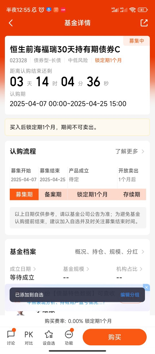 我已将$恒生前海福瑞30天持有期债券C$ 加入自选。我将家庭资产分为三层:底层(50%)配置货币基金应对日常开支,中层(30%)配置持有期债基锁定中期收益,顶层(20%)定投指数基金博取长期回报。恒生前海福瑞30天在中层仓位表现尤为突出——近一年年化波动率0.8%,不到沪深300指数的1/10,却贡献了组合40%的绝对收益持有期债券基金是一种具有一定优势的投资选择,像$恒生前海福瑞30天持有期债券C$ ,它规定每份基金份额有30天的最短持有期限,这在一定程度上避免了投资者的短期频繁操作,有助于基金管理人更稳定地进行债券资产配置和投资运作。从产品特点来看,其投资于债券资产的比例不低于基金资产的80%,投资范围广泛,包括国债、金融债券、企业债券等多种具有良好流动性的金融工具,还运用了骑乘策略等多种投资策略来增强组合收益,有较为明确的风险收益特征,理论上预期风险与收益高于货币市场基金,低于混合型基金和股票型基金,为中低风险等级。不过,任何投资都有风险,持有期债券基金也不例外,如可能面临利率风险导致债券价格波动,信用风险使得债券发行人无法按时支付本息,还有流动性风险等。我考虑自身的风险承受能力、投资目标和资金流动性需求,认为这款基金比较适合短期闲置资金的稳健增值,当然也会密切关注市场动态和基金业绩表现,以便及时调整投资决策。@恒生前海基金