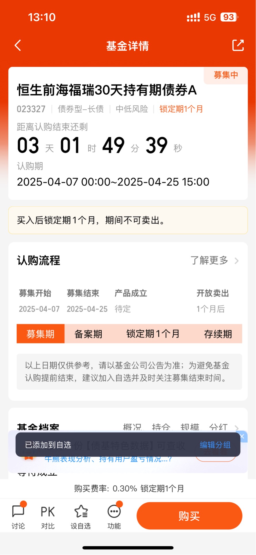 该基金采用纯债投资策略,只投资于国债、金融债、企业债等固定收益类品种及银行存款等低风险金融工具,不涉及股票、可转债等权益类资产,能有效规避股市波动风险,收益相对稳定。其30天的持有期设计较为合理,既避免了投资者因市场短期波动而频繁买卖,又不会过分限制资金流动性,在持有期满后可随时赎回,兼顾了资金使用的灵活性与收益的确定性。投资门槛也很低,1元即可起投,能满足普通投资者将小额闲置资金进行理财的需求。此外,该基金C类份额不收取认购/申购费,持有超30天免赎回费,综合费率低于同类平均水平,降低了投资成本。而且,基金经理会通过深入研究宏观经济形势等,动态调整久期与券种,主动管理基金以增强收益,在控制回撤的基础上追求超额收益。