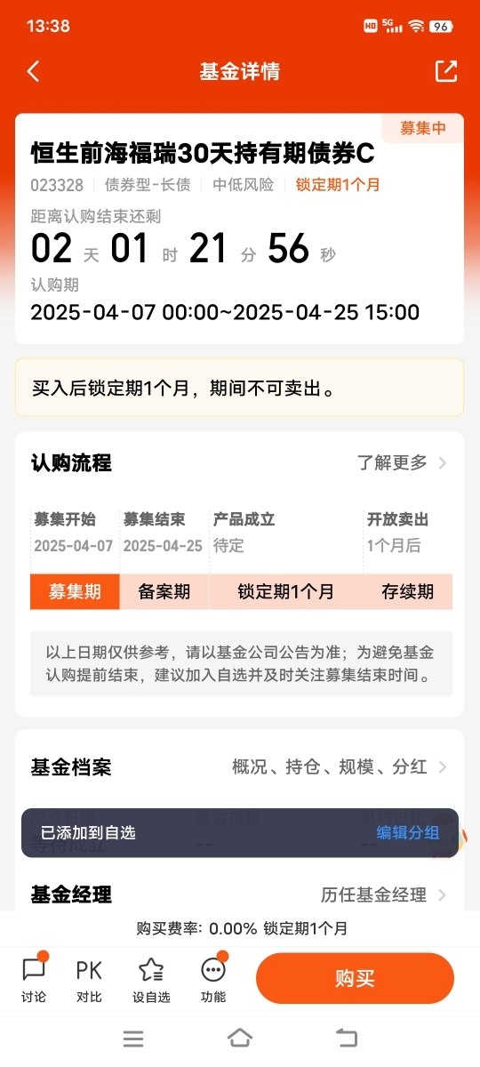 $恒生前海福瑞30天持有期债券C$采用严格的纯债投资策略,只专注于固定收益类资产,有效降低了投资组合的整体波动性。在资产配置上精挑细选,通过深入研究宏观经济形势、货币政策走向以及利率变动趋势,精心挑选优质债券标的,并合理分散投资以降低个券风险。30天持有期设计,不仅帮助投资者克服短期波动带来的焦虑情绪,还能引导长期投资理念,避免因市场短期波动做出错误决策。而且持有超30天免赎回费,综合费率低,适合中短期持有,在债市波动时为投资者提供一个稳定的投资港湾。@恒生前海基金