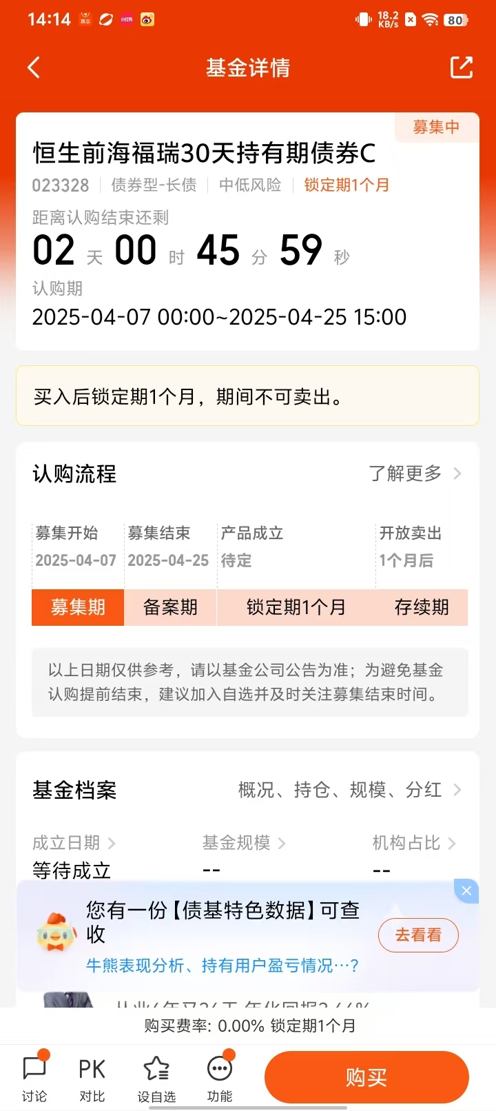 而恒生前海基金旗下的恒生前海福瑞30天持有期债券C(023328)进可攻退可守。如果对流动性的要求不高,闲置的资金在可预见的一段时间内不会动用,又希望能获得比银行理财和普通债基更高的收益,可以考虑恒生前海福瑞30天持有期债券C基金。