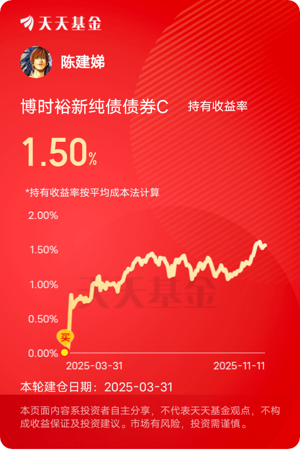 最近央行引导利率下行,这基持仓债券等级高,信用风险低,拿着挺踏实。昨天账户又添了