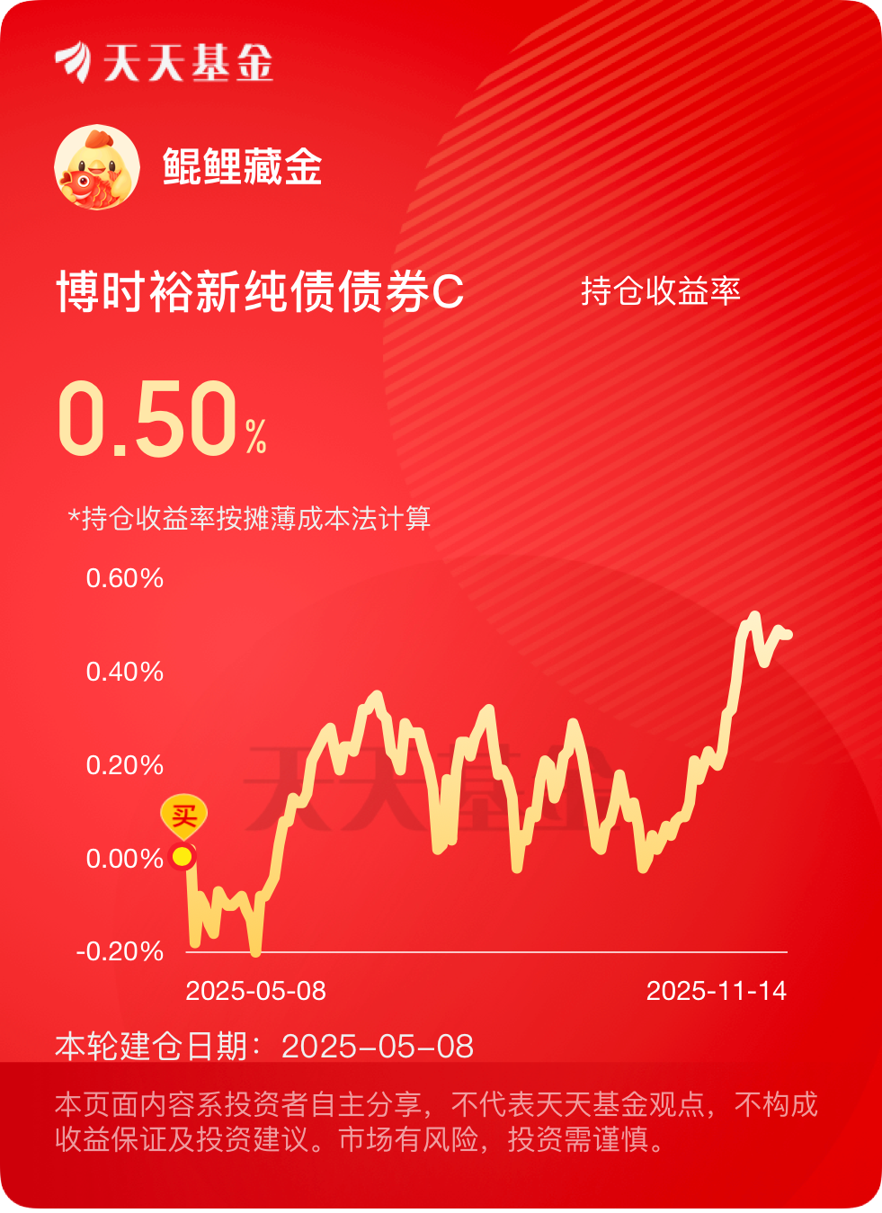 债券企稳回升,这只主投政金债,安全高、波动小,持有体验挺好。
