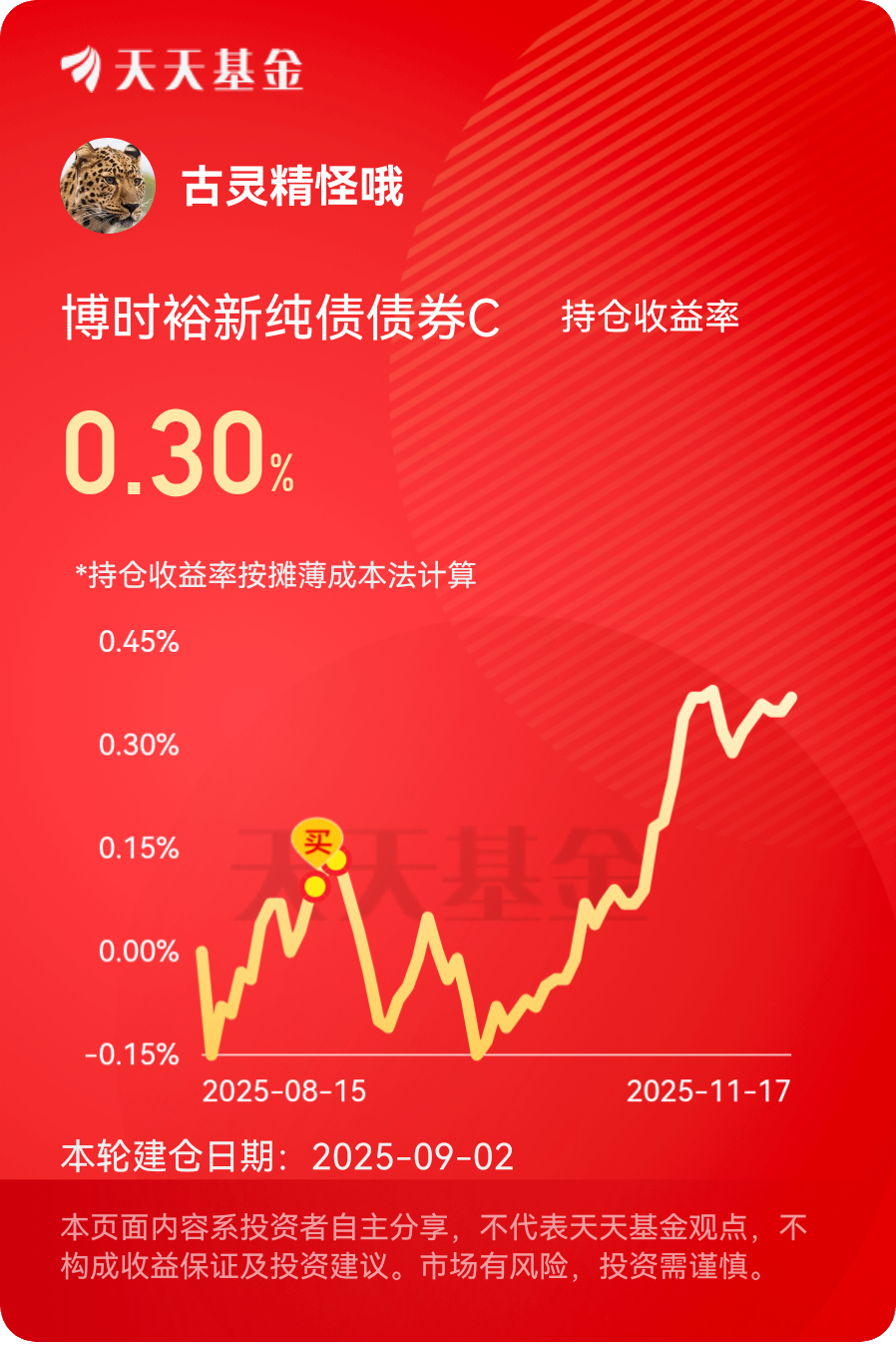 政策层面鼓励适度宽松,市场利率中枢下移趋势可能没完。这基久期合适、弹性好,性价比不错#晒收益#