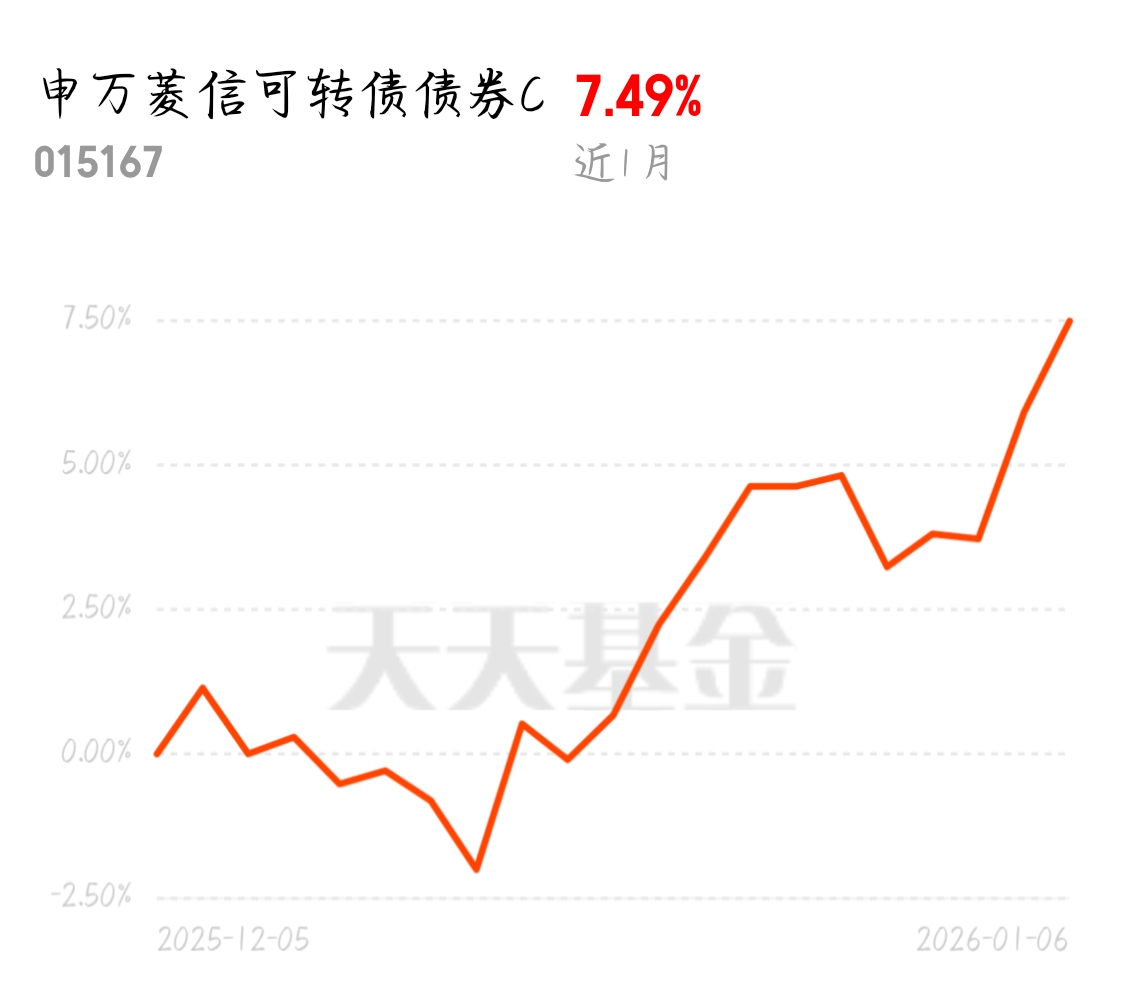 近期转债市场供需偏紧,估值维持高位,权益市场走强。申万菱信可转债 C 两日连涨收 360 个蛋,近 1 月 7.49%,较同类平均优势明显,覆盖电池、消费电子等方向,现在入场正当时。$申万菱信可转债债券C$