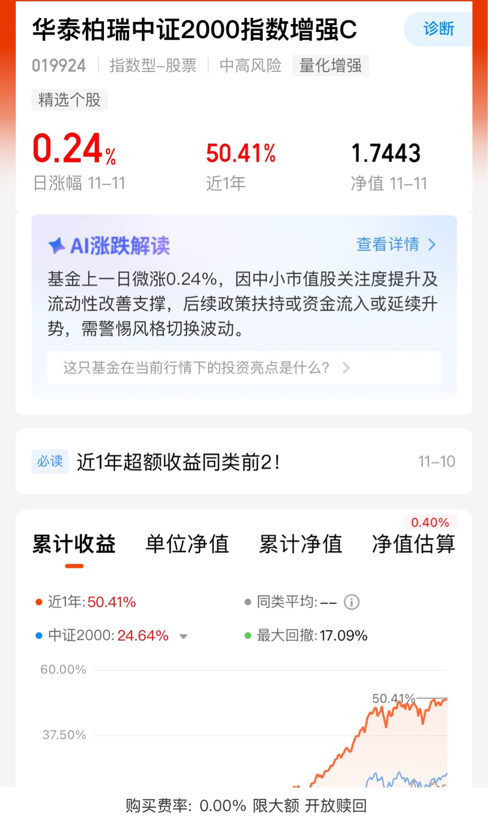 最近A股真是让人摸不着头脑,大盘指数上不去下不来,热门板块轮动比翻书还快,追高容易被套,空仓又怕错过机会。但细心的人能发现,小微盘股一直在偷偷发力,本周微盘股指数涨了3.16%,领跑所有宽基指数,近一个月更是涨了9.17%,赚钱效应拉满。11月市场没明确方向,题材炒作活跃,正好给小微盘创造了舞台,胜率本来就高。这种时候,选对工具很重要,华泰柏瑞的产品就很适配当下行情,它家的量化增强策略超额收益特别明显,之前近一年的同类排名都是第一,能在小微盘的行情里帮你多赚一笔,比自己瞎买股票踏实多了。$华泰柏瑞中证2000指数增强C$