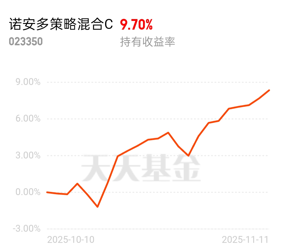 $诺安多策略混合C$没想到年底还是有这种持续走高并且又稳定的地方。对于咱们小白来