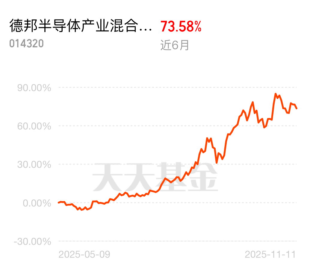 存储芯片全球市场份额向国产转移,行业迎来国产替代红利,投资价值凸显。德邦半导体产业混合C存储占比很高,近6个月收益73.58%,长期业绩不错,最近表现也亮眼,准备逢低加仓。
