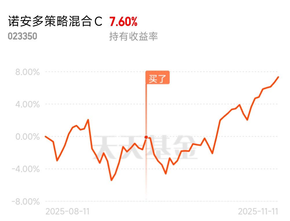 这个星期大A一直在震荡,还是微盘股给力啊,连涨了八天呢$诺安多策略混合C$