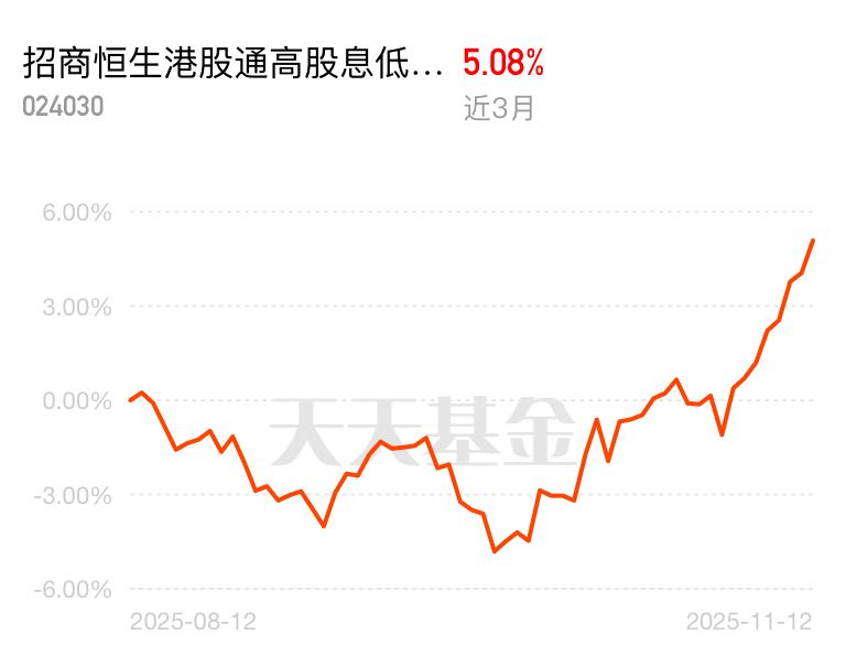 现在大家理财都看重“稳稳的幸福”,高股息低波动的标的超受欢迎。招商恒生港股通高股息低波动ETF联接C近3个月收益5.08%,跟踪的港股指数优势明显,不仅股息率达6%,还能定期评估分红,低费率设计让长期持有更便利,底仓首选。$招商恒生港股通高股息低波动ETF发起式联接C$