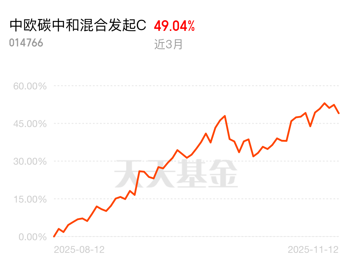 政策发力支持碳中和,先进技术加速落地,新能源板块迎来黄金期!中欧碳中和混合C近3个月涨了49.04%,聚焦储能、光伏等核心方向,前十大重仓股都是行业领军者,加仓还有满2万减36福利,别错过行情。