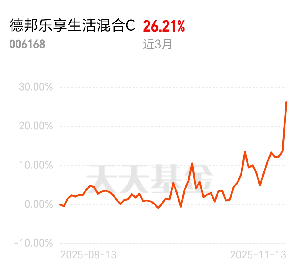 最近市场行情有点让人捉摸不透,涨一天跌一天的,选基金得靠眼光。德邦乐享生活混合C近3个月涨了26.21%,昨天大涨10个点,今天继续逆市上涨2个点的神基,我要抓住机会上车!