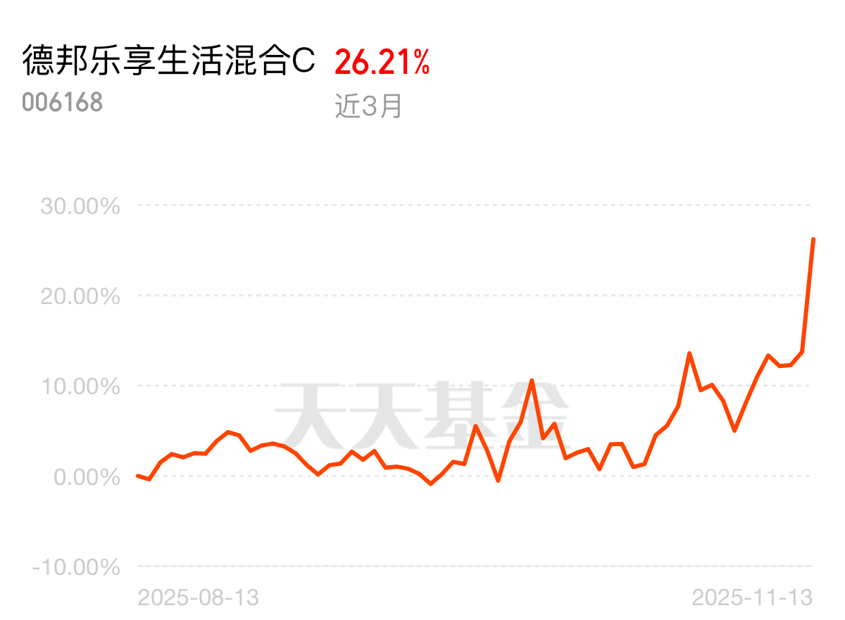 现在大家都在感慨,买基金想赚钱越来越难,震荡行情太磨人。德邦乐享生活混合C很争气,近3个月涨了26.21%,昨天大涨今天逆市接着涨,妥妥的神基,我要上车了!