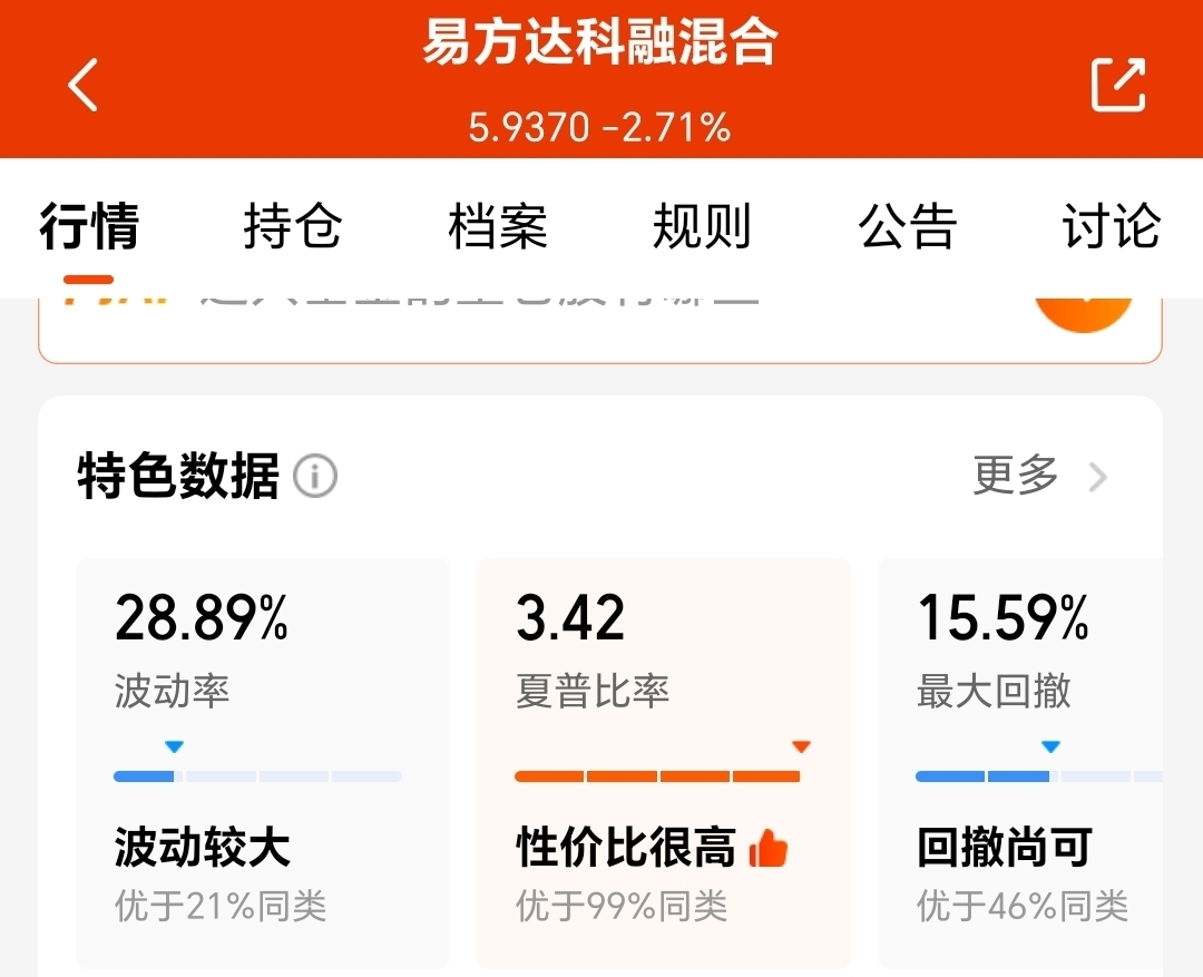 想蹭科技牛市又怕高波动?$易方达科融混合$ 就不错,基金经理凭3-5年长期业绩站稳脚跟,近5年排名1/1213,机构持股占比50%,实力获专业资金认可。不同于单一科技赛道押注,该策略覆盖科技+新能源+军工,反内卷配置规避回撤风险,近3.5的高夏普比率远超竞品。当前市场震荡重整,其超强回撤控制能力精准适配行情,既能深度参与成长轮动,又能平稳hold住波动,是想跟上科技行情、追求高性价比的安心之选!