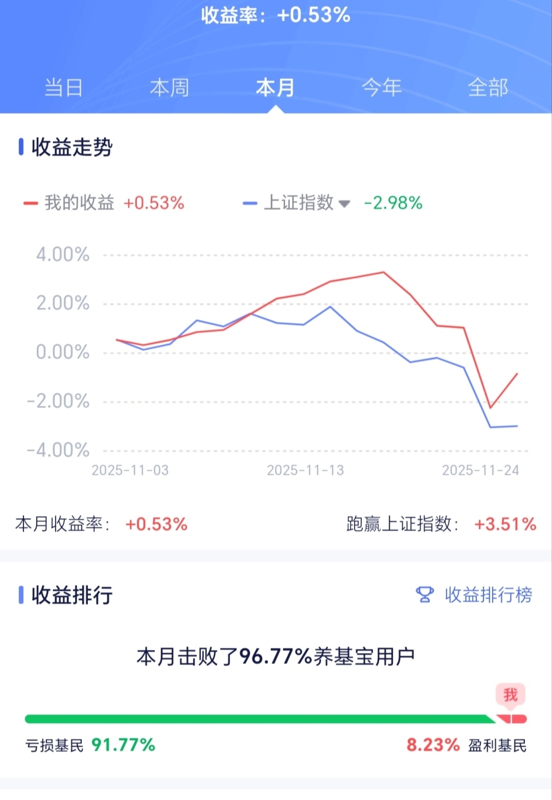 我现在持仓攻守兼备,连续几天降价后,又涨了两天,今天我的账户翻红了。