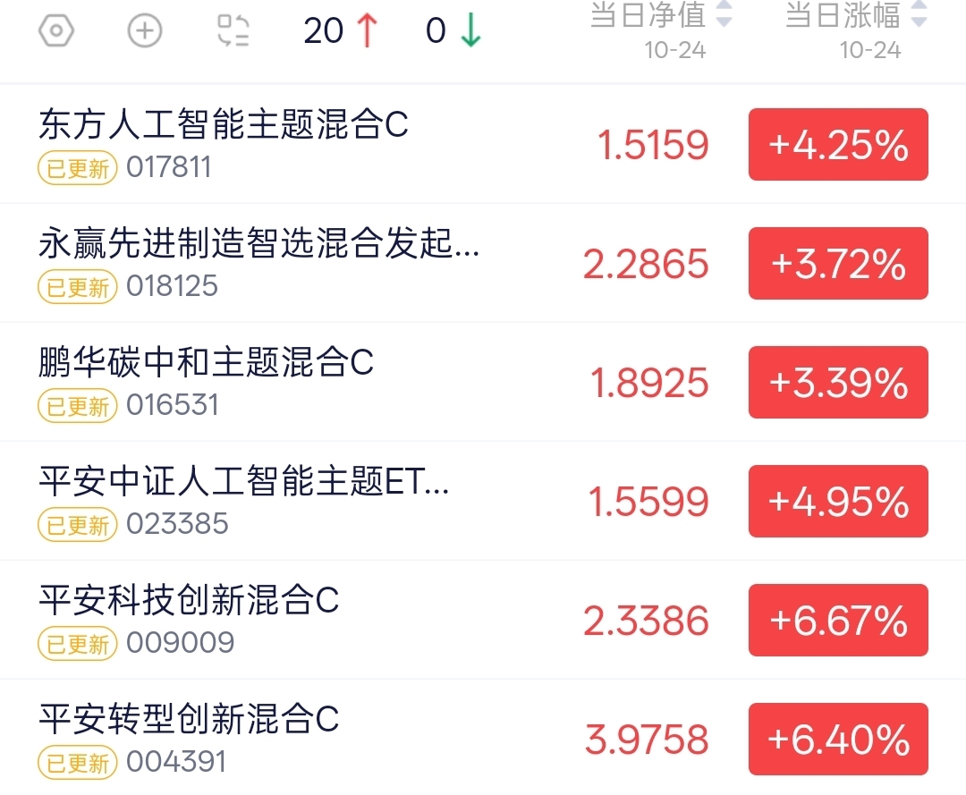 $东方人工智能主题混合C$ 今天上涨了4.25%都可以啊