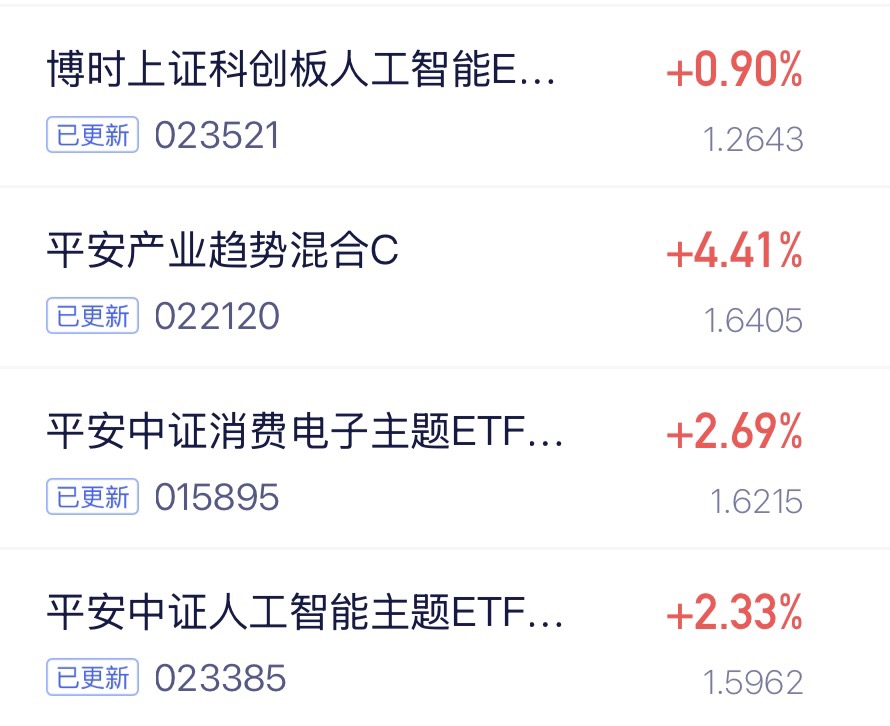 $平安中证人工智能主题ETF发起式联接C$ 涨幅2.33%