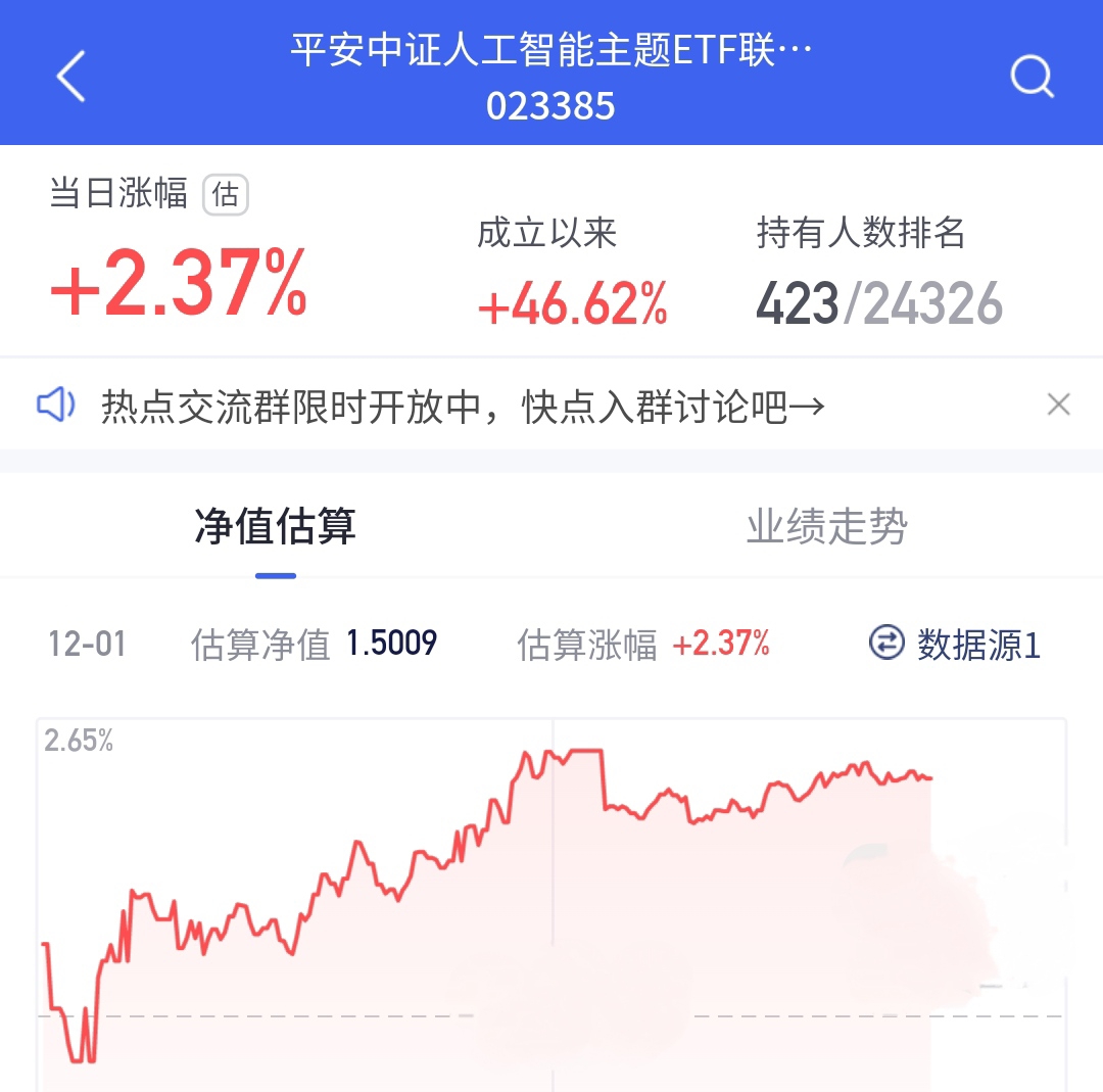 4连涨了,像$平安中证人工智能主题ETF发起式联接C$ 最新估值涨2.37%,比同类涨的多,现在人工智