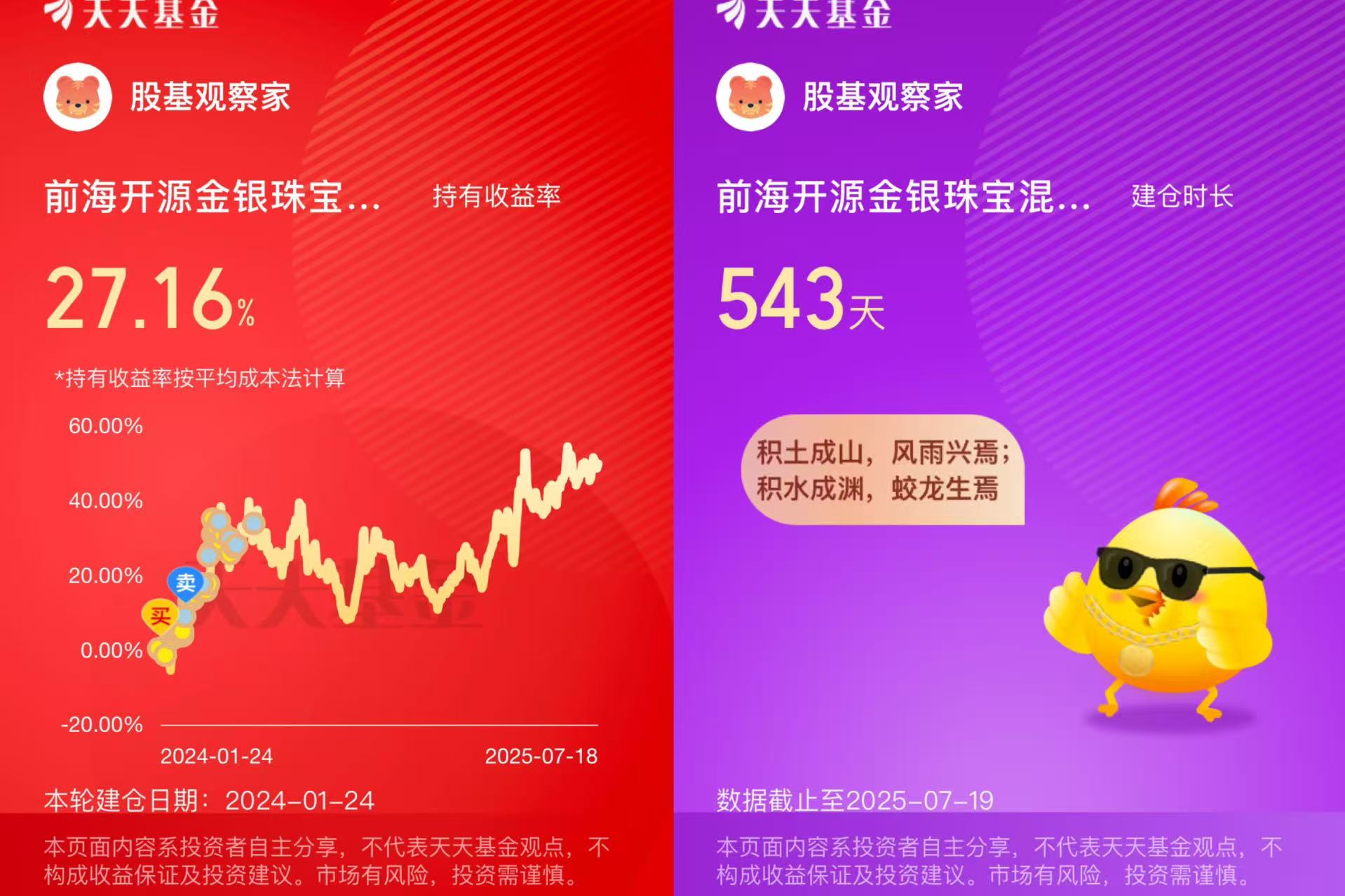 同时,我还坚定持有吴国清经理的前海开源金银珠宝混合A(001302)至今,已经超过543天,同样获得超过30%的良好投资体验,同样会坚定持有下去。