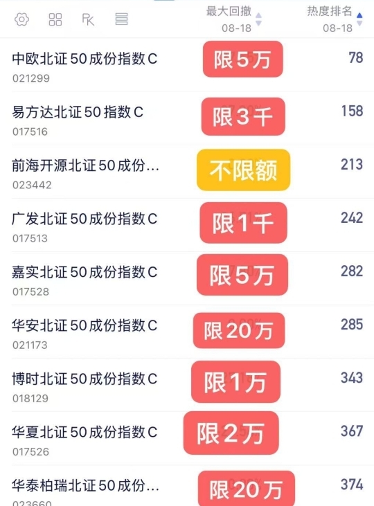 北证行情爆了!很多基限额严重啊,翻到之前整理的北证50基合集,想跟上的火速收藏一下