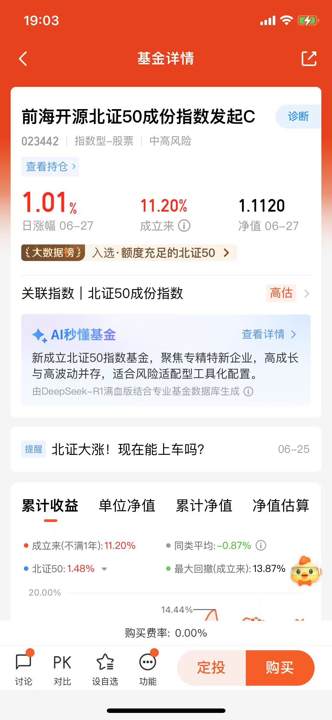 北交所这波政策红利 估值修复的‘双响炮’,值得关注。想精准捕捉北交所核心资产的整体机会,又想控制风险、追求费率友好,前海开源北证50C (023442) 这个工具,算是把‘指数基金的纪律性、量化老将的稳、持有成本的省’这三点给直接拿捏了。机会窗口期,工具选对,事半功倍。当然,记住老规矩——波动性还在,上车系好安全带!基金代码023442,先放自选里品品?@前海开源基金 @天天精华君 @天天基金创作者中心