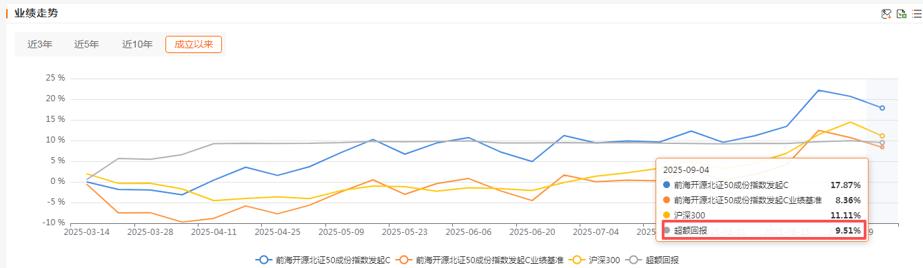 前海开源北证50成份指数发起C自2025年3月11日成立以来,表现出较强的增长潜力和高弹性特征。