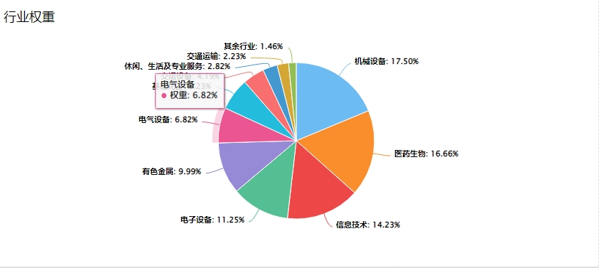 从行业分布来看,北证50成分股主要集中在制造业,其前三大权重行业为机械设备、医药生物以及信息技术,其中电力设备权重占比达24%。