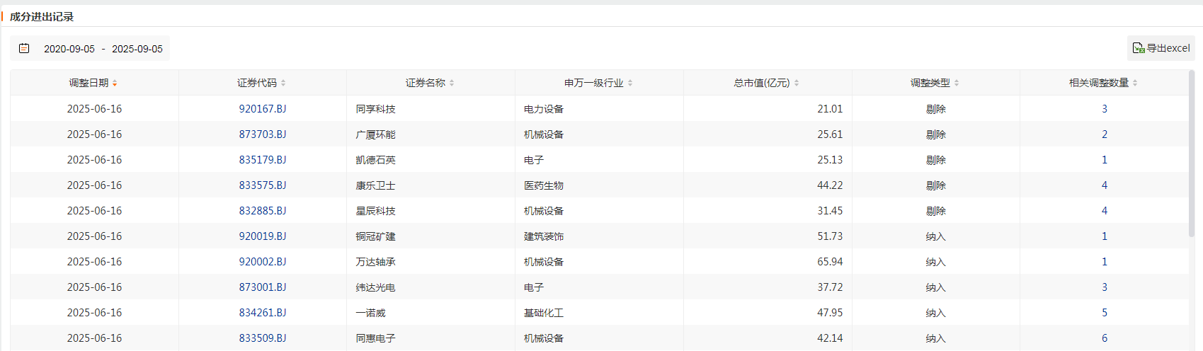 6月16日,北证50指数再度进行了成分股更新,作为北交所的核心指数,本次成分股分别纳入/剔除5家标的,行业结构进一步优化,提升了对代表“新质生产力”方向的创新型企业覆盖,更契合指数“专精特新”的特色定位。