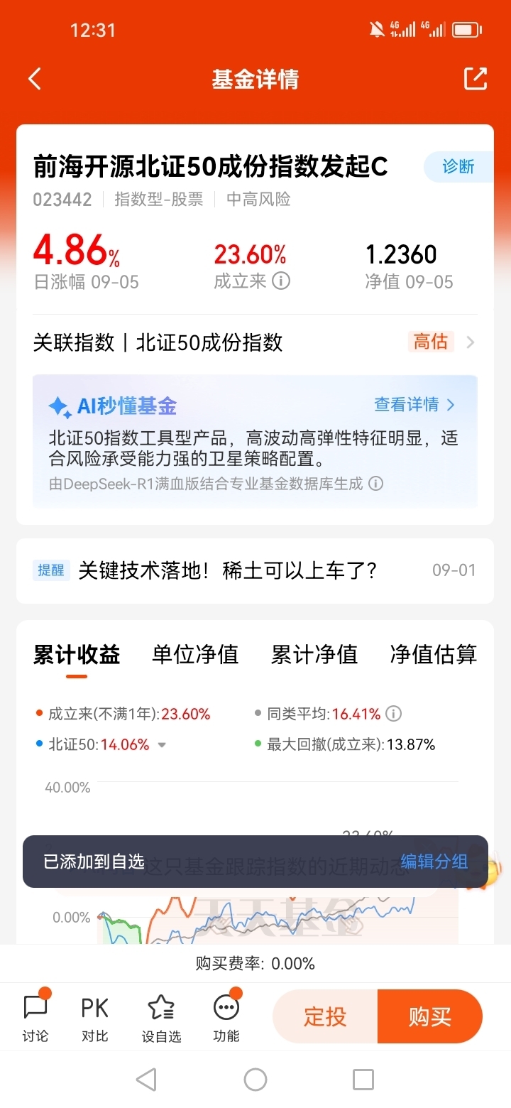 我已将$前海开源北证50成份指数发起C(OTCFUND|023442)$ 加入自选,我看好北证50指数,理由如下:从北交所成立至今,我们也的确看到了北交所里面的很多优质的中小企业它们的茁壮成长,已经在高质量的发展道路上找到了一条适合自身的前进的轨迹,这一点也让我们投资者感到欣慰,北交所的前身就是新三板里面的那些精选层公司,所以北交所的市场定位就是那些创新型的中小企业,它们因为某些原因,没有达到在主板或者是创业板上市的标准,所以北交所的出现就是为了解决它们上市难的问题的,因为在北交所上市的的对于企业最低市值的要求是2亿元(上交所,深交所的要求是10亿元)。还有北交所上市的企业大部分都是那些创新的小而美的企业,它们的股本往往极小,但它们的成长性却非常好,而在当天涨跌幅的上下波动方面,北交所上市的股票,除了首日的涨跌幅不受限制以为,其他交易日它们的涨跌幅的上下波动都是30%,北交所的特征,可以用一句话来形容,通过金融改革,引领市场的活水,让它们慢慢的流向了那些专精特新的科技类公司,而它们的科技属性则体现到多个层面,不仅仅是在芯片或者是半导体领域,所以北交所里面的公司非常值得投资,特别是北证50指数的成分股,它们就北交所里面权重最大,业绩相对稳定,流动性最好的那50家公司,它们的营业收入与净利润的增速在北交所里面属于领军人物,它们每一年的研发投入占营业收入的比例也是非常高的,而且这一数值几乎呈现出的是一种每年都在递增的趋势,而在研发人员的数量上,北证50指数的那些公司,他们也非常重视研发人才的引进的,目前这50家公司的平均每家的研发人员的数量已经超过了100人,而在创新成果方面,这些公司申请的专利总量也已经超过了1.73万,特别是其中包含的授权专业为3100件,相当了不起,所以我重点关注前海开源北证50成份指数发起C(023442),因为这款基金从2025年3月成立至今,获得的累计收益率为23.60%,相信优秀。@前海开源基金