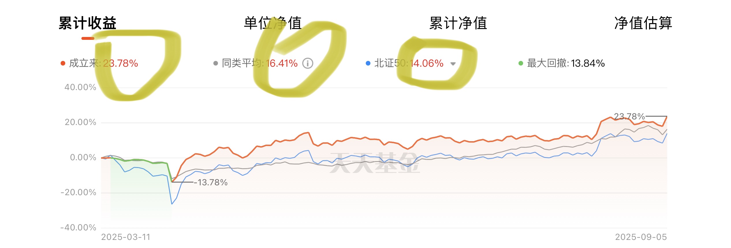 第二,它跑赢业绩比较基准!这只基金自2025年3月11日成立以来,其A类份额累计收益率达到了23.78%。 大家猜同期北证50指数涨了多少?只有14.06%!同类基金的平均收益率为16.41%。 这意味着它轻轻松松跑赢了指数接近10个百分点(超额收益9.72%),在同类基金里也是佼佼者,表现可以说是非常优秀了。