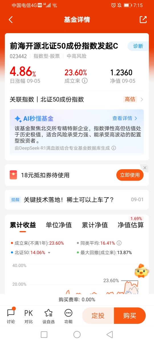 我加自选关注$前海开源北证50成份指数发起C$ 多时。该基金成立时间不长,但表现稳健优秀,规模翻倍,理由有二:一是北证50成分股是北证的龙头,绝大多数成分股是专精特新小巨人企业,集中于半导体、新材料和高端制造等高景气硬科技领域,弹性很大,成长性很强。投资他们容易获得超额收益。$前海开源北证50成份指数发起C$ 就是典型代表。二是常言道:好马要有好骑手。$前海开源北证50成份指数发起C$ 经理黄玥就是“好骑手”。他投研自下而上深入前瞻,跟踪指数紧密,紧盯市场行情,动态调整仓位,精心挑选标的,获取了超额收益。从统计数据看,今年成立以来该基金取得了超过25%的收益率,特别是近一周、近一个月更是大大跑赢同类平均收益。而且,该基金采取发起式,公司跟基民利益捆绑,风险共担,收益共享,让投资者放心。由于公司与基民“同甘共苦”,团队敬业专业,黄玥先生“妙手”管理,该基金表现越来越好,越来越赢得了投资者的信任,规模从成立时的3.8亿份扩大到6月30日的1.11亿份,短短3个月,规模翻近3倍。因此,投资$前海开源北证50成份指数发起C$ ,能更好地分享北证50成分股发展的巨大红利。乘北证调整之际,申购$前海开源北证50成份指数发起C$ 正当时!