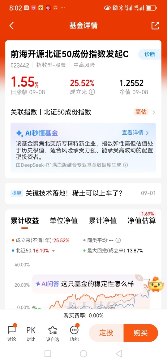 目前看,北证50指数涨幅较基准指数仅仅上涨幅度为60%,作为一个新的交易所和一个新的指数,同时又是肩负着助力新质生产力发展重任的指数,未来肯定会有良好的表现,可以逢低布局。购买方式可以通过$前海开源北证50成份指数发起C$ 积极参与。