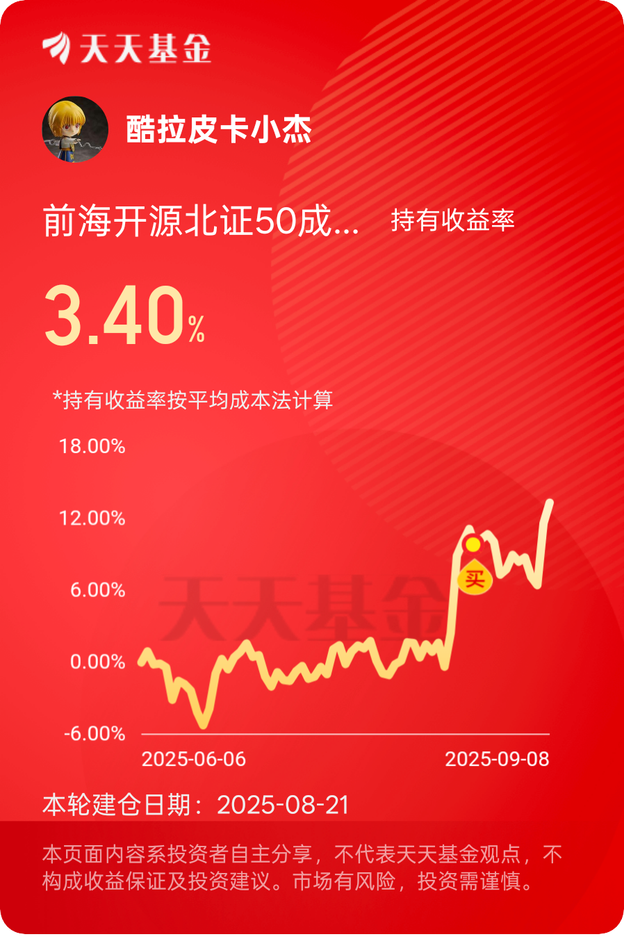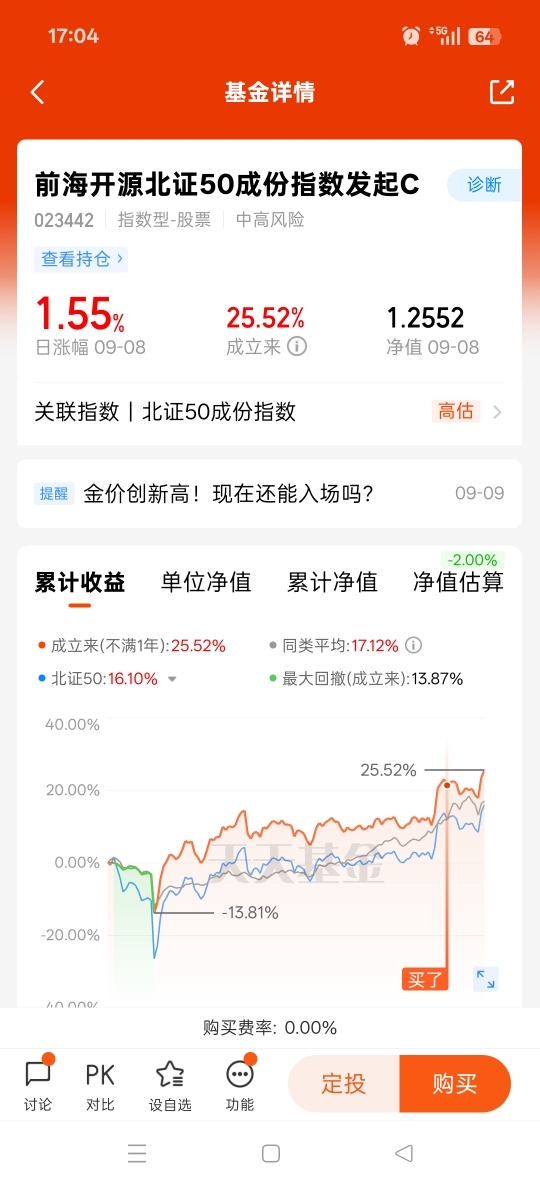 前海开源北证50成份指数发起C跟踪北证50走势,有效降低了北交所投资门槛,且投资相对简单,关注大趋势即可,作为指数基金,该基金具有费率偏低优势,可以起到增厚收益的效果。前海开源北证50成份指数发起C近三月收益13.37%,特别是近期受益于新能源板块触底反弹,该基金逆势走强,成功跑赢大盘。强者恒强,接下来将有更多表现机会。@前海开源基金