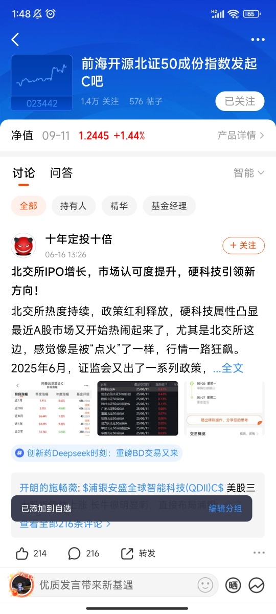 我已将$前海开源北证50成份指数发起C$加入自选,看好北证50,作为一个小盘科技