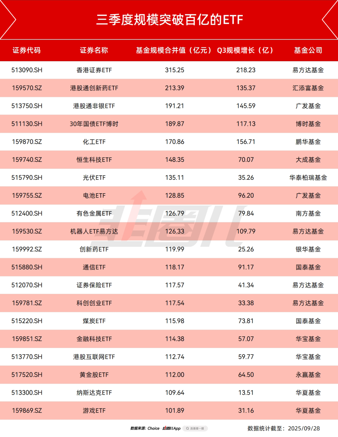 这个季度应该有20只ETF破了百亿关口。