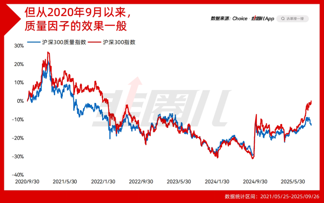只不过,2021年之后的这几年质量因子确实是挨揍状态,毕竟茅哥本茅都是挨揍状态,所以指望300质量短期有亮眼发挥,概率不大,还是得等基本面。