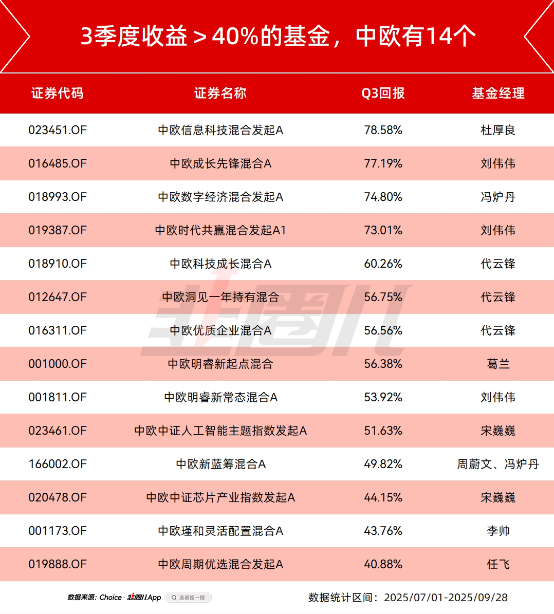 从2023年开始,中欧做的投研体系工业化到今年正是一个开花结果的窗口,3季度这个行情,不管是主动基金还是布置的场外指数基金,都有一定的收获。