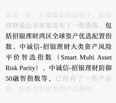 比如招银理财最近和中诚信定制的指数也比较多,可能后边也会产品化。
