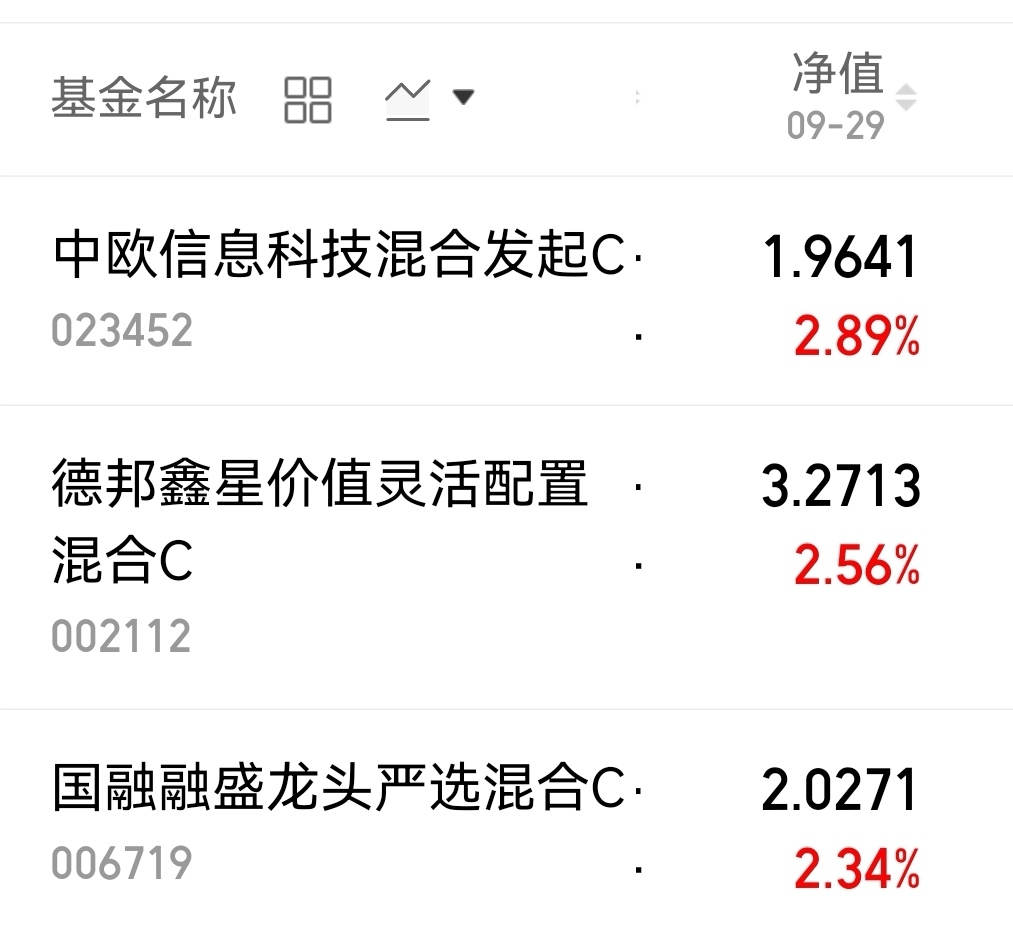开心,科技板块今天强势复苏,晚上加大鸡腿了,$中欧信息科技混合发起C$ 9月29日大涨2.89%。给力呀,重仓新易盛、中际旭创等科技龙头,杜厚良掌舵,精准把握AI与半导体机遇,有机会可以加点。