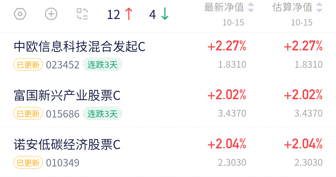 $诺安低碳经济股票C(OTCFUND|010349)$上涨2.04%